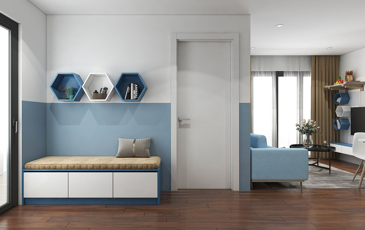 Phòng khách tinh tế, nhẹ nhàng với sắc xanh dương