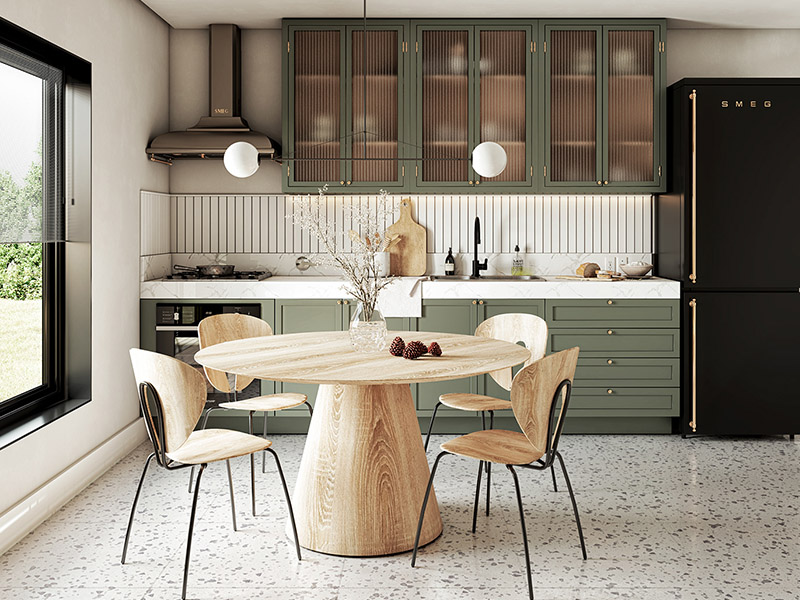 Bàn ăn bằng gỗ dễ kết hợp màu sắc và hình thức với các đồ vật khác trong nhà bếp, tạo ra sự thống nhất trong lối bài trí nghệ thuật nhà bếp của gia đình bạn. Sở hữu những chiếc bàn ăn hiện đại sẽ giúp bữa cơm của chúng ta trở nên vui vẻ và thoải mái hơn, nâng cao giá trị cuộc sống.